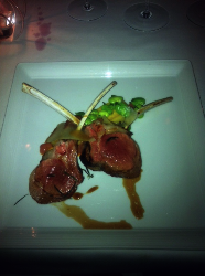We started with the Ferdi Pinot Grigio and Pinot Noir (under $15), both of which were light, acidic and dry, exactly how I enjoy my typical Pinots from the region. This went well with our Foie Gras, a salty, fatty goose liver, typically served with a sweet fruity sauce (or wine) to counter the saltiness and fat content. Excellent.